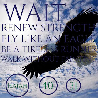 Where all He will take me on this journey, I do not know but, what I do know is I am ready. I am ready to go wherever He says to go and to do whatever He says to do. Everything I want is not what I need or even if it is what I need, it might not be what I need at that particular moment. In this kingdom it is about His timing, not ours. I watched a video yesterday that was on facebook of a Pastor having folks jump into the jump rope. If you jump too soon, you miss it, if you wait too long, you miss it. I have been so frustrated hearing from God and wanting to jump right in and was missing it and just couldn't understand. Well.....here we go again......wait on the Lord. Just wait on the Lord. So, I will wait and while I wait I will do what I can where I am until He gives me the next directive. This is my least favorite thing, waiting. But, I will wait and I will get better and better at doing it because in this kingdom journey whatever you keep messing up on that is what you keep having to repeat so, this time I will get it right. Glory to God I surely don't want to have to repeat some things that I have been through in the last few months. Oh no Jesus, say it aint so. So, for those of you that are in that waiting mode, just know that you are not alone and it does get easier. Hang on to His promises and to the vision He has shown you and don't forget in the dark what He has clearly spoken/shown to you in the light. He is a rewarder of those that diligently seek Him and He is faithful to His word and to His promises. Wait, I say on the Lord.